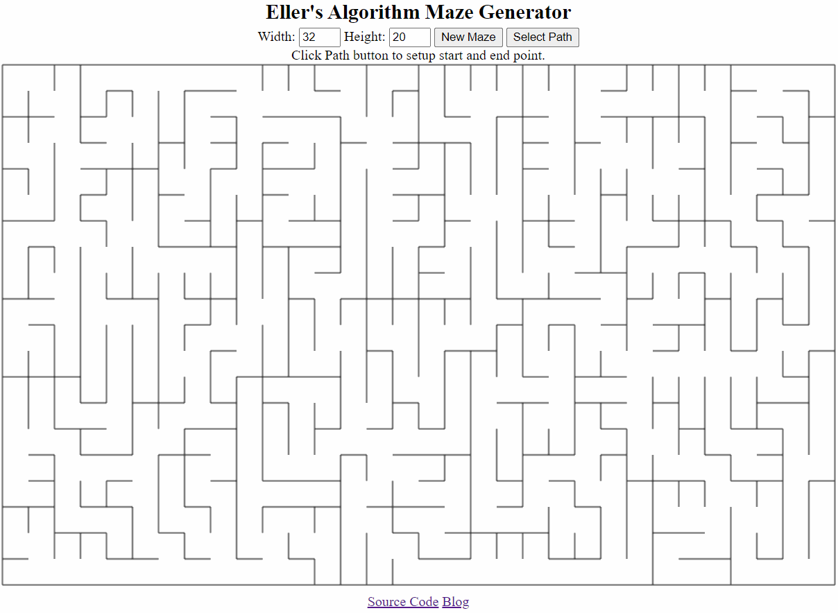 - Understanding perfect maze generation row after row with Eller algorithm, using a pure JavaScript class